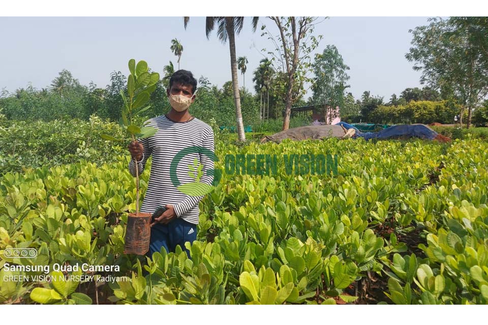 Cashew tree (Anacardium occidentale) is a tropical evergreen tree that produces the cashew seed and the cashew apple pseudofruit. Cashew plants available in our Nursery.